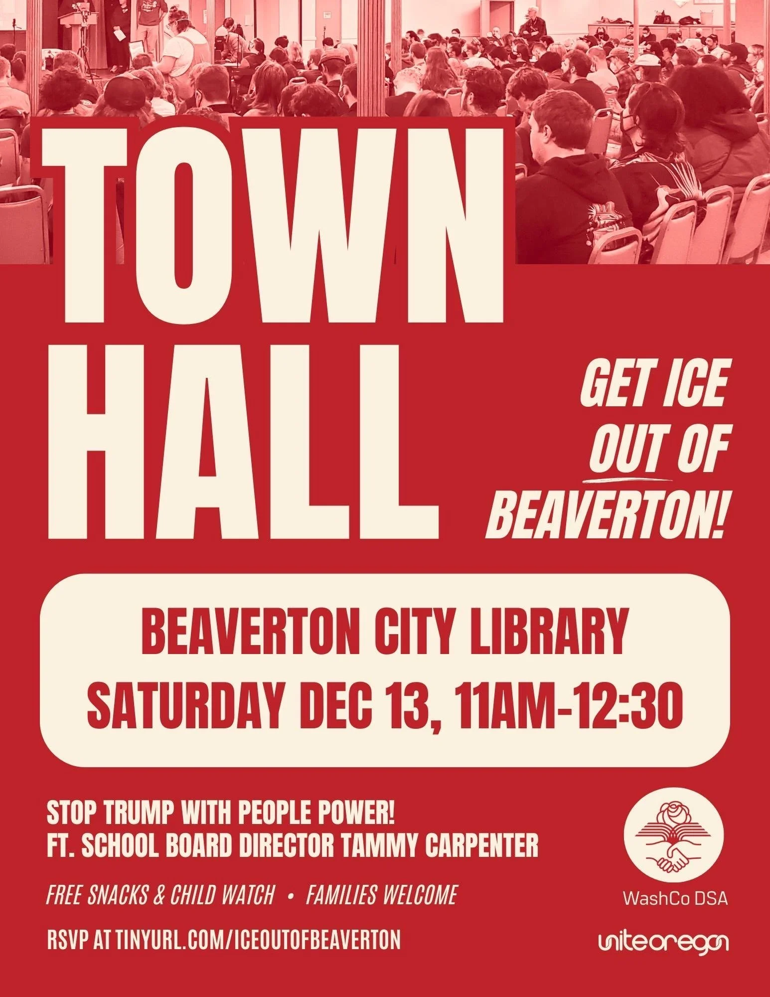 Feel free to reach out to the event organizers via email: Washington County DSA (the local branch of Portland DSA) at info@portlanddsa.org or Piyawee Ruenjinda at piyawee@uniteoregon.org.